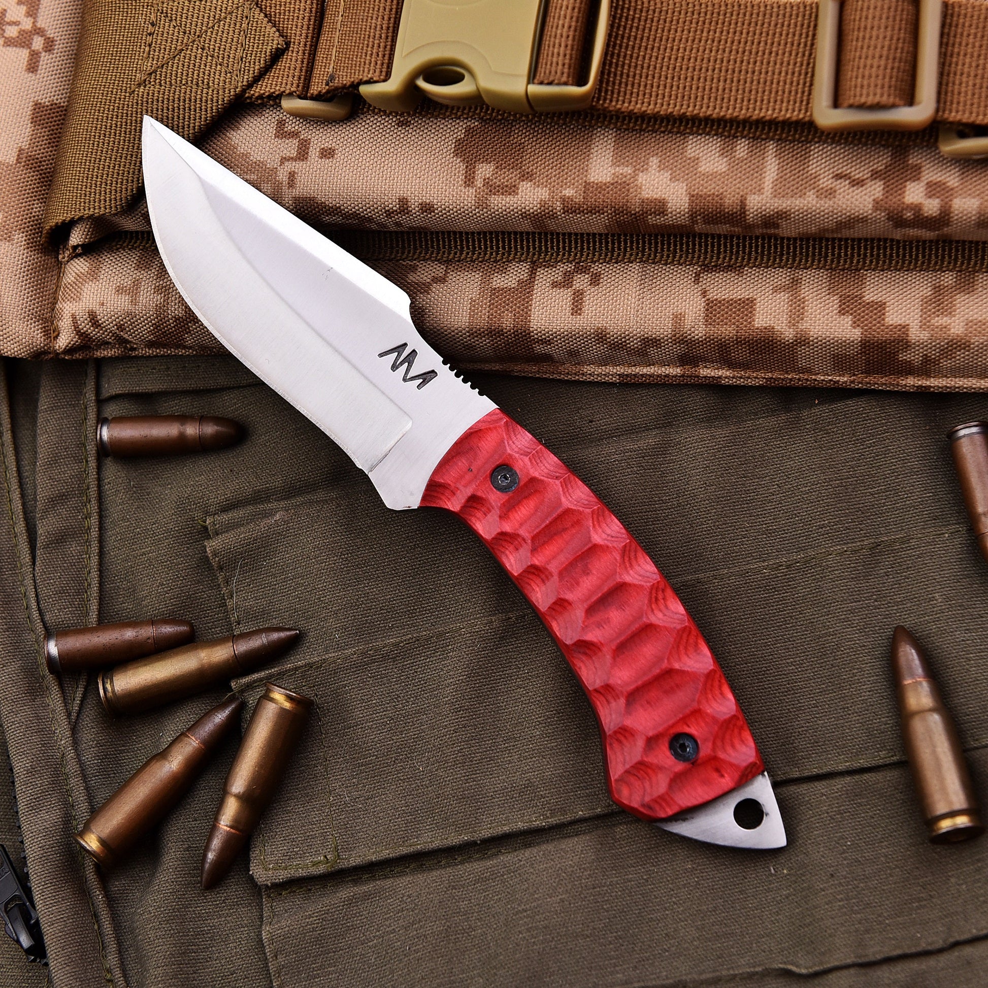 Adventure-Ready Design – Eye-catching red handle makes a bold statement while the drop-point blade tackles bushcraft, survival, and everyday carry tasks.