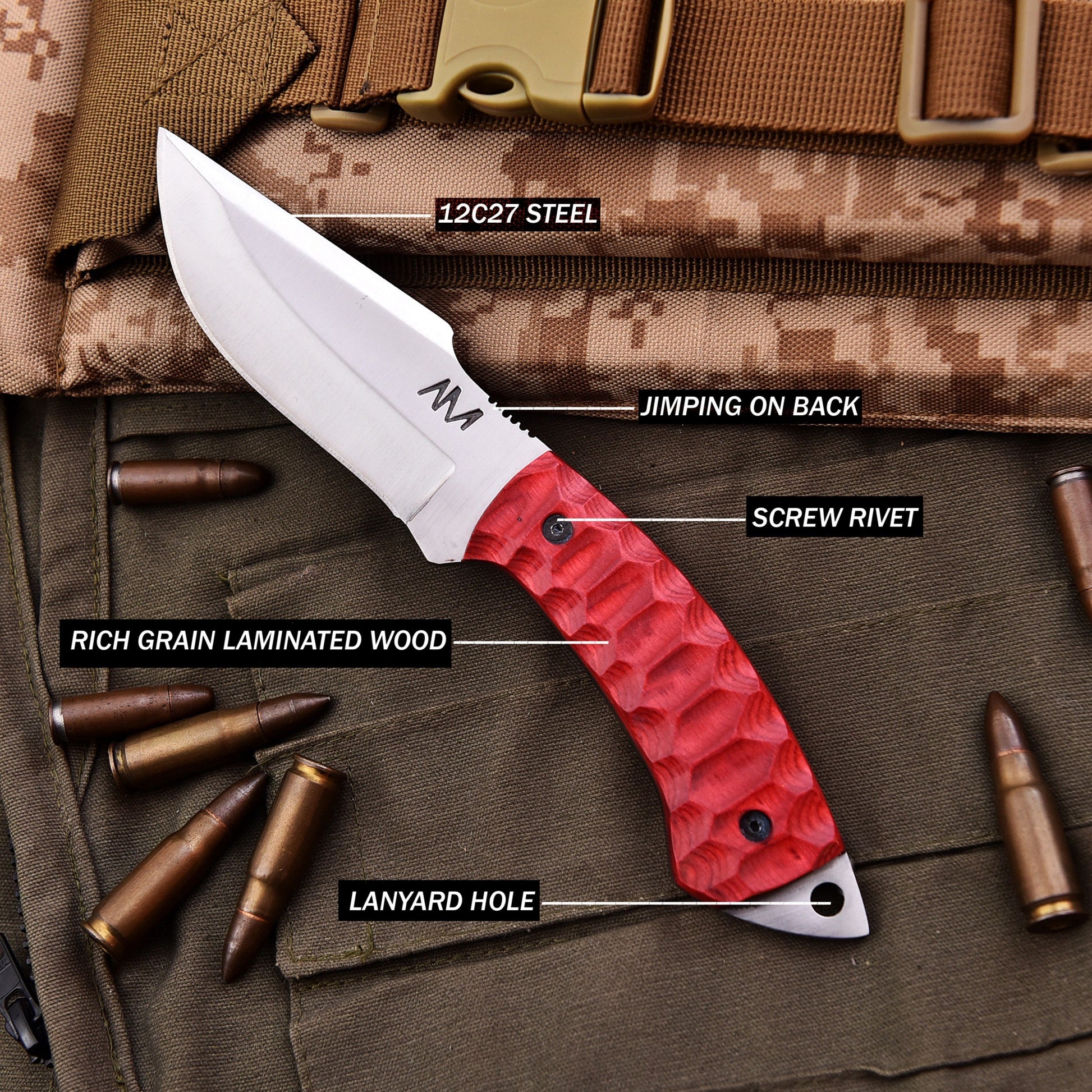 Ultra-Sharp Edge – High-carbon 12C27 stainless steel holds a razor edge for effortless skinning, carving, and camp chores.