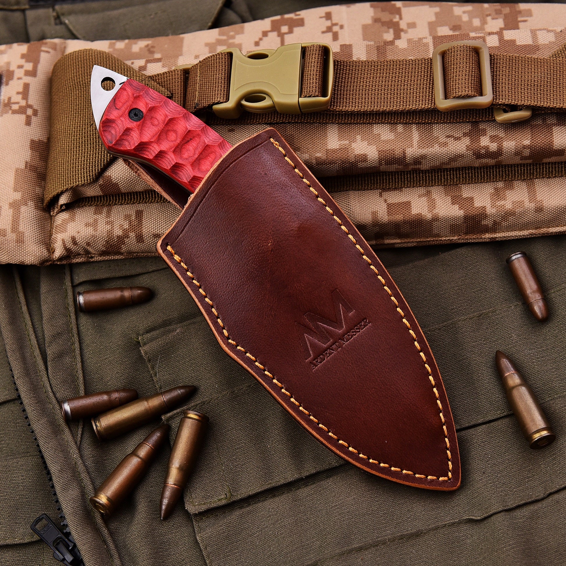 AM Reaper Fixed Blade Knife with Ergonomic Red Handle